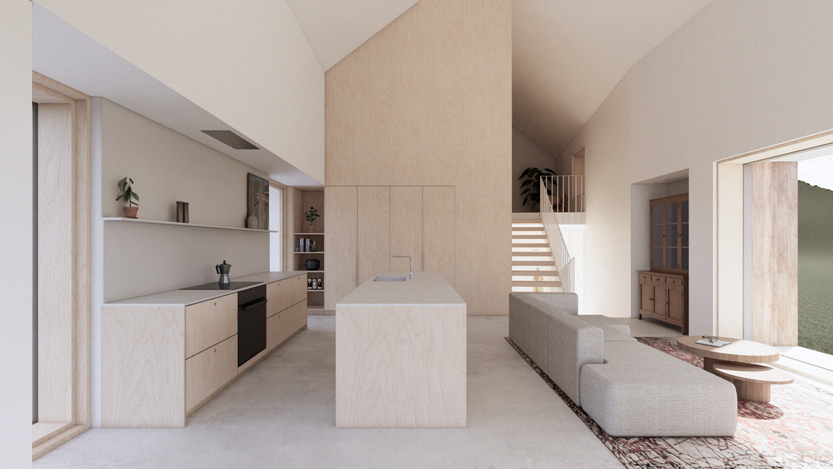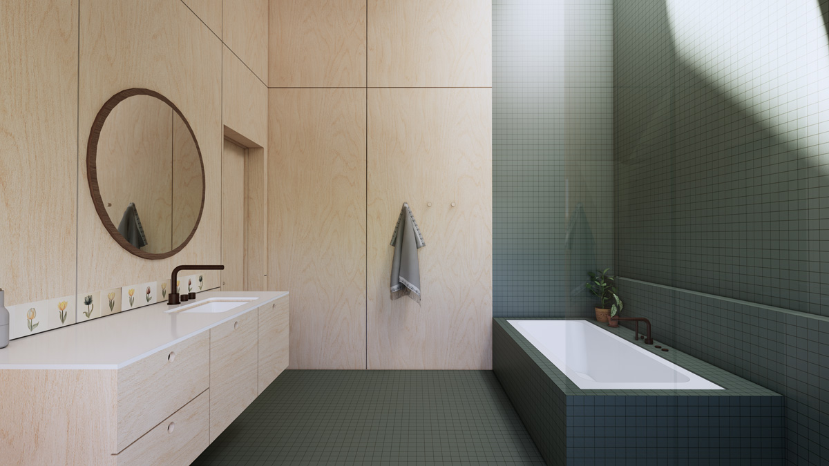 Embracing natural materials and a muted palette, the design celebrates texture and subtle contrast. Deep green tiles and warm wood finishes are balanced with abundant daylight to create interiors that feel both grounded and uplifting.